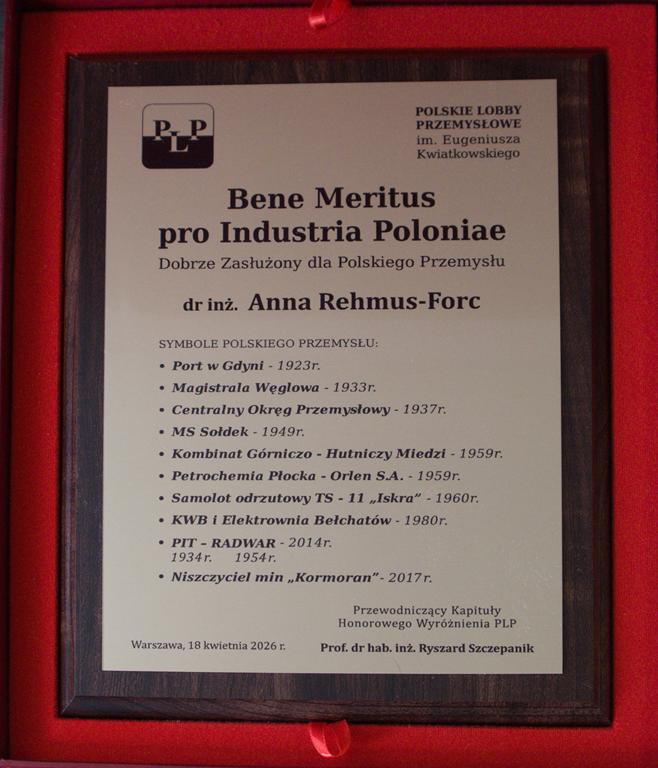 Miło nam poinformować, że w dniu 18.04.2026 w Warszawie w siedzibie PIT-RADWAR S.A. odbyła się uroczystość wręczenia Honorowego Wyróżnienia „Bene Meritus pro Industria Poloniae” („Dobrze Zasłużony dla Polskiego Przemysłu”).