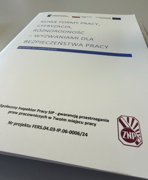 Szkolenie pt. „Nowe formy pracy. Cyfryzacja, różnorodność – wyzwaniami dla bezpieczeństwa pracy” zostało zorganizowane w ramach działań wspierających rozwój kompetencji związkowych w obszarze ochrony praw pracowniczych i bezpieczeństwa pracy. Spotkanie było skierowane do przedstawicieli organizacji związkowych oraz osób pełniących funkcję Społecznych Inspektorów Pracy (SIP).